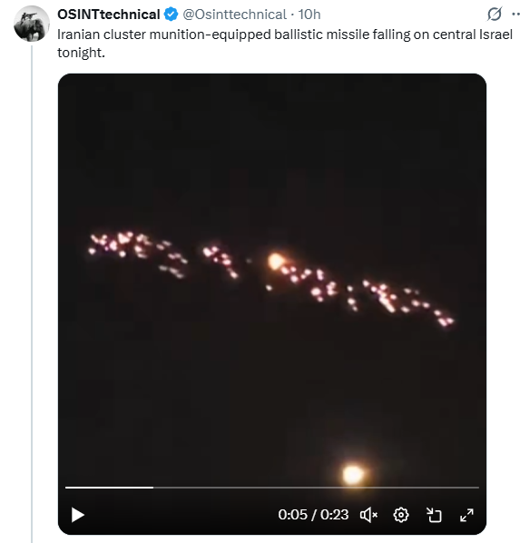 Iran a folosit din nou bombe cu muniţie cluster lovind centrul Israelului azi-noapte