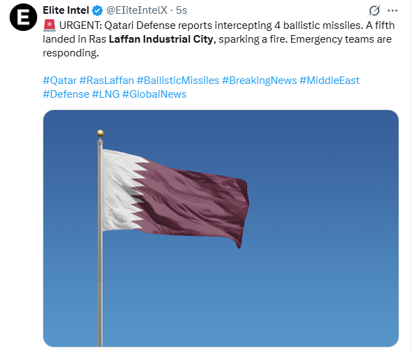 Apărarea Quatar-ului interceptează 4 rachete balistice. A 5-a a lovit Ras Laffan Industrial City
