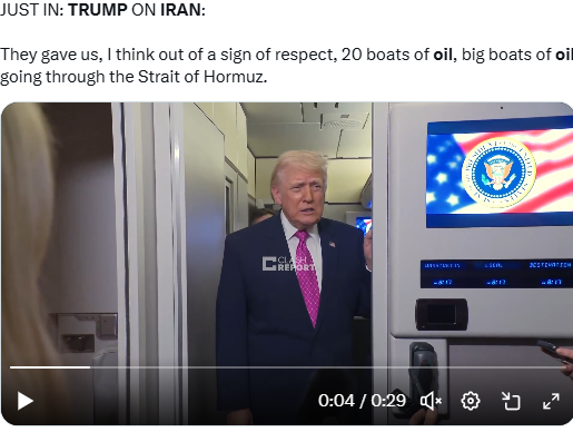 Trump se laudă că iranienii au lăsat să treacă 20 de petroliere prin strâmtoarea Hormuz în semn de respect